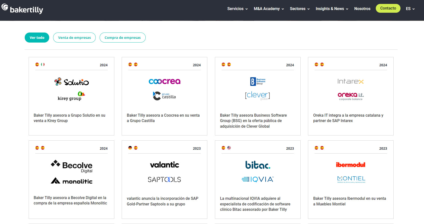 - Se programan tipos de contenidos o taxonomías específicas (informes sectoriales, transacciones, informes de valoración, webinars…) sobre los que se llamarán a diseños a medida mostrando información propia para cada una. Tanto en los listados como en las páginas individuales.